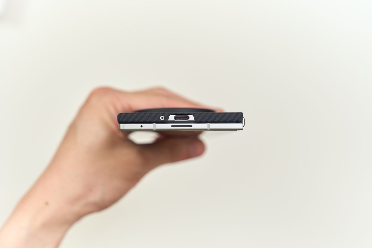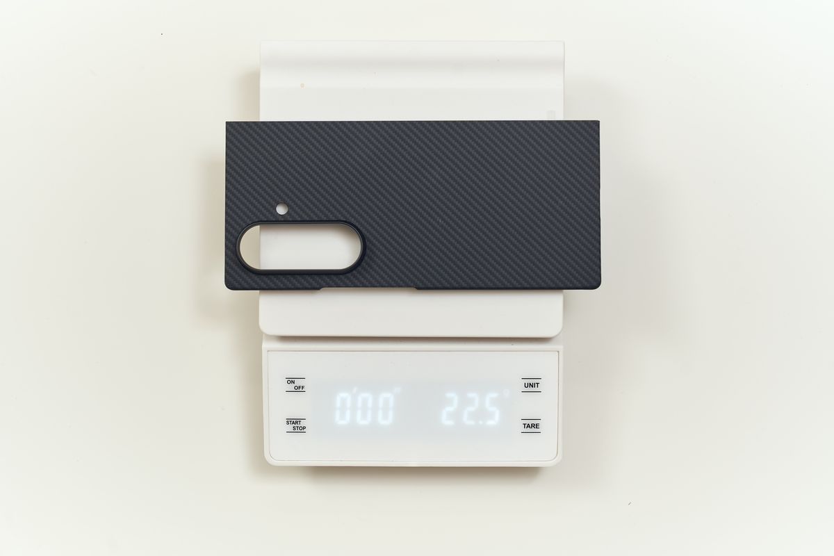 Fold7は本体がツルッとした質感なので、裸で持つと地味に滑るんですよね。PITAKAに変えてから、片手で持ったまま上ボタンを押す動作も格段にやりやすくなりました。指先が繊維に吸い付く感じ、と言えば伝わるでしょうか。