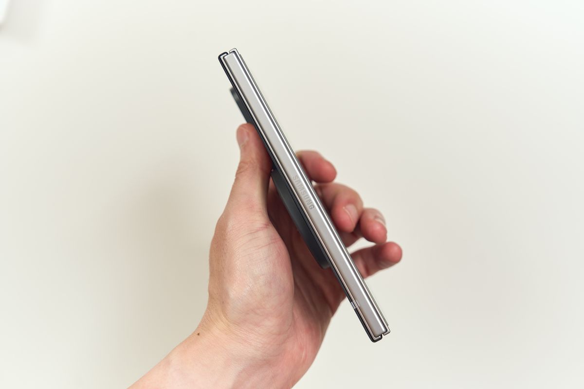 先ほども紹介しましたが、この強力な磁力がFold7の開いたときの運用も補助してくれます。約8インチを片手で持つなんてことはGrip3があれば余裕です。