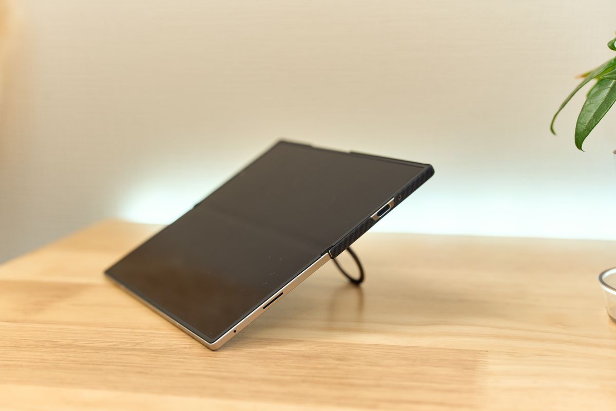 一方でFold7を開いている状態でデスクに直置きすると流石にガタつくため、この点は注意が必要です。