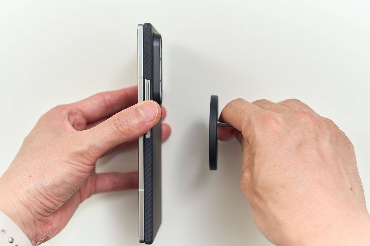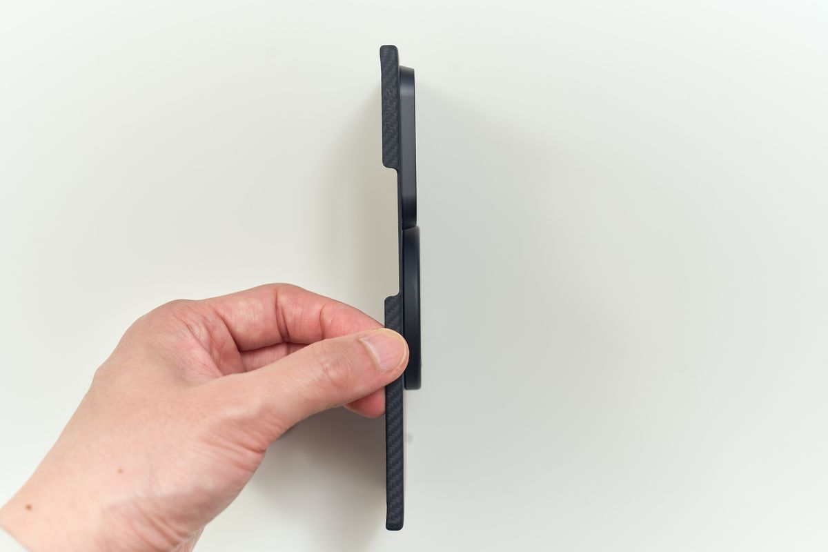 Grip3はN52マグネットで最大1.2kgの磁力を持つと公称されています。PITAKAケースとの接続はカチッと気持ちよく吸い付き、普段使いで「勝手に外れた」ということは今のところ一度もありません。