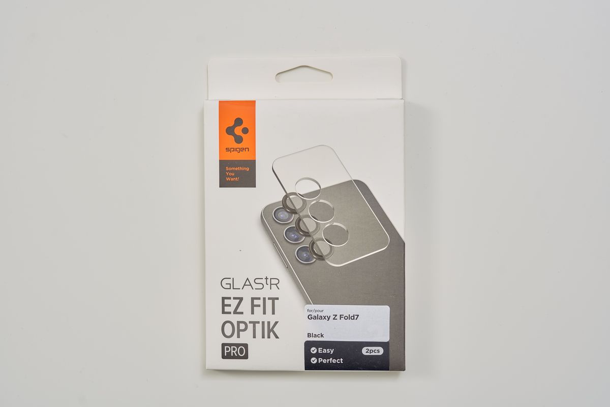 まずは画面フィルムから。Galaxy Z Fold7のカバーディスプレイ用、SpigenのEZ Fit Proです。