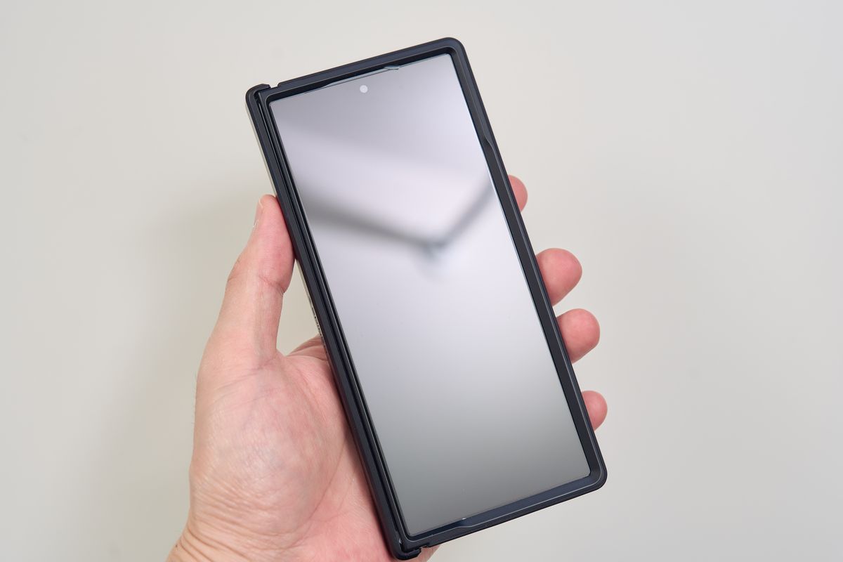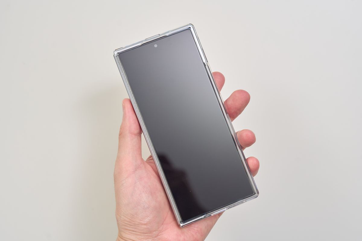 このシリーズはGalaxy Z Fold5やiPhoneでも使用してきましたが、被せて引っ張るだけというシンプルな設計のおかげで、貼り付けに戸惑うことや埃が入ることがほぼありません。ぶっちゃけ、フィルム貼りが苦手な人ほど効果を実感できるタイプです。しかも2枚入りなので、万が一貼り付けに失敗しても、あるいはこの先落下させて割ってしまっても、もう一度貼り直せるという安心感があります。フィルムは消耗品と割り切れる構成なのも嬉しいポイントです。