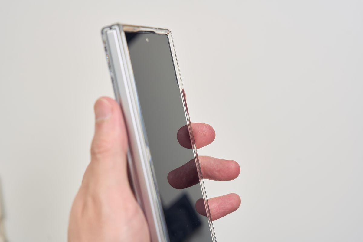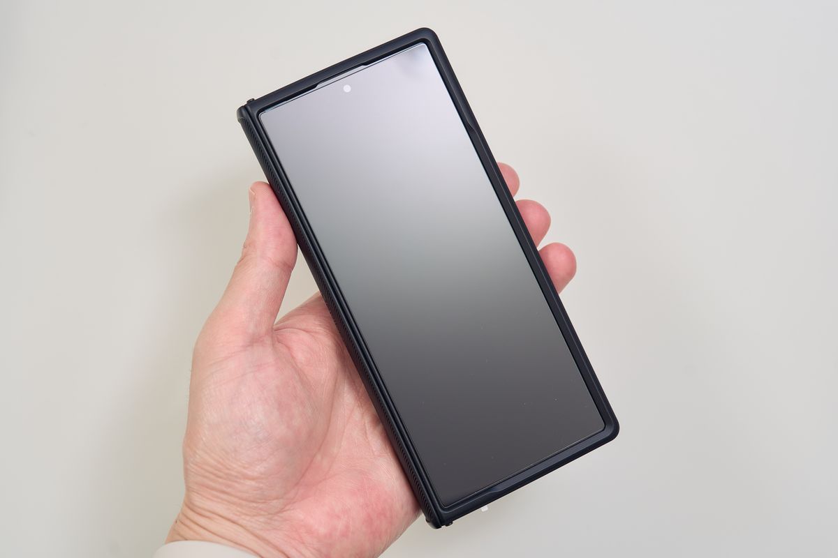 Galaxy Z Fold7は薄すぎて開きにくいという、ある意味贅沢な悩みがあります。ところがこのタフアーマーを最初から付けてしまえば、厚みが増す+底に凹みができることで開きやすさが圧倒的に向上します。これは正直、想像以上の恩恵でした。
